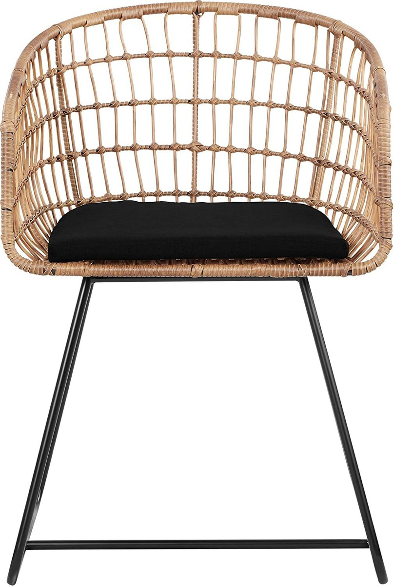 Tejido a mano, estructura de silla de poliratán resistente; Cojín de asiento extraíble y reversible en tela negra; Patas y base de metal negro curvados para mayor durabilidad; Fresco y versátil para usar como una silla de salón, silla de exterior o silla de comedor; Alternativa inteligente a una silla de invitados en una oficina en casa El mimbre es un pilar principal en muebles casuales, y por una buena razón y esta silla muestra lo acogedor que puede ser. Esta silla curvada está construida de poliratán de color claro que contrasta maravillosamente con la tela negra y la base de metal. Diseñado para mayor comodidad como estilo, este cojín extraíble de esta silla añade una cantidad perfecta de acolchado, mientras que los brazos se mantienen a una altura relajante. Pruebe una de estas sillas como un acento fresco en su sala de estar, o considere un par para usar en cada cabeza de su mesa de comedor. Todos nuestros productos estan en inglés SKU 15092136216