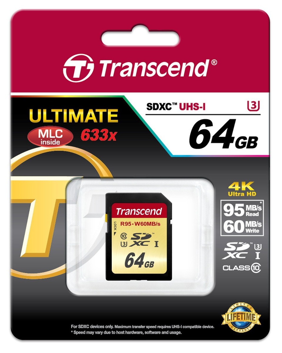 Toma más fotografías de alta resolución rápida (95MB / seg. De lectura y 60MB / seg. Escribir) con esta tarjeta de memoria UHS-I de Transcend 64GB SecureDigital SDXC clase 10 U3. Adicional Filtrado Todos nuestros productos son de Estados Unidos SKU 14021821998