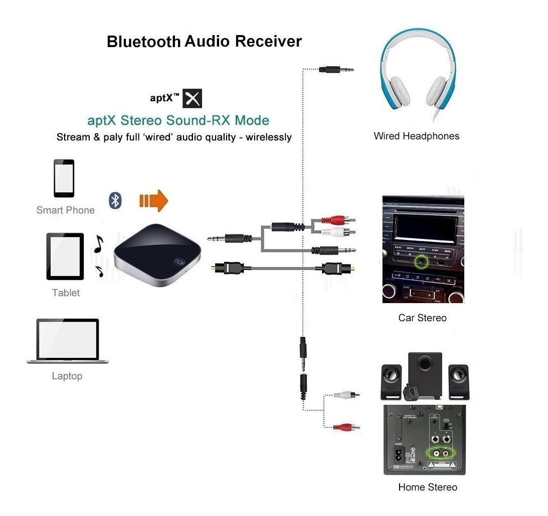 En el modo de receptor, la tecnología aptX está diseñado para resolver el ancho de banda y latencia barreras, la entrega de cable de sonido calidad de audio de forma inalámbrica a través de conexiones Bluetooth.