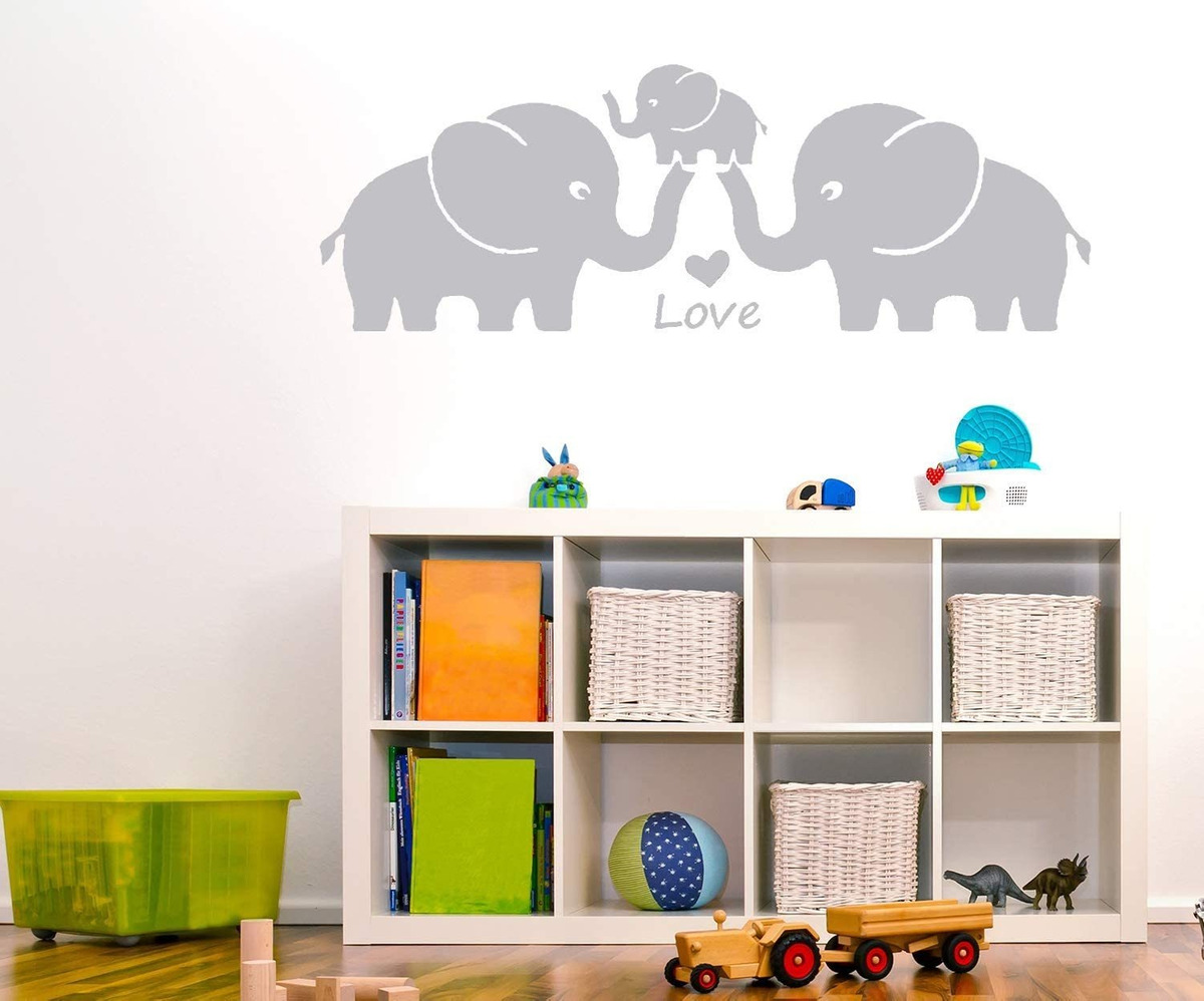 Tres MAFENT pared linda Familia del elefante calcomanía con los corazones del amor del bebé cotización arte o la pared del cuarto decoración del dormitorio Decoración (gris, pequeño) Color: Gris | Talla pequeña