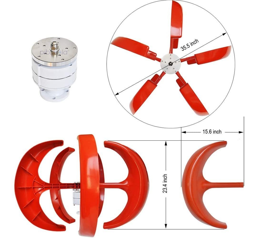 Especificaciones: Turbina De Viento Pikasola 200w Max 220w 12v 5 De Palas Eóli