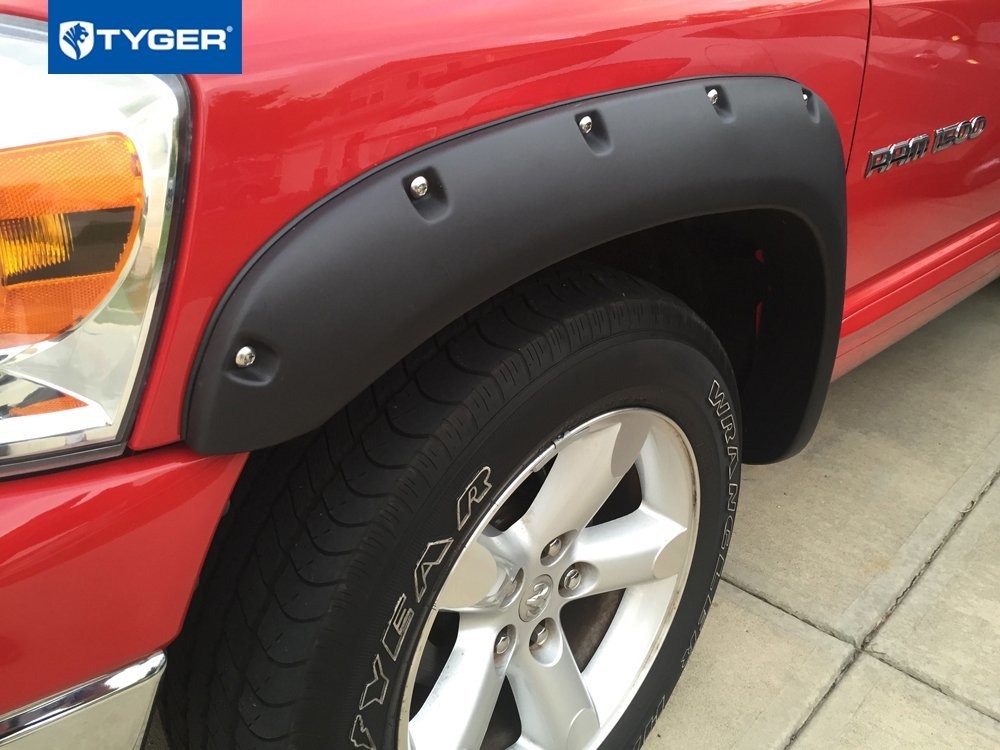 aparición de núcleo duro exhibido por rebajada remaches de acero inoxidable con su enorme presencia, Tyger nivel de equipamiento de lujo con bolsillo del estilo Fender bengalas no le fallará .; Altura de la llamarada: 5. 5″ en el frente y 4. 5″ en la parte trasera. La cobertura de los neumáticos: 2. 5″ en la parte delantera y trasera .; durabilidad asegura y flexibilidad a través de moldeo por inyección, una mayor fuerza de bengala guardabarros puede firmemente contra grietas, deformaciones y tiza, ofreciendo avanzada fuera de la carretera experiencia de conducción .; 4 piezas 100% UV llamaradas de la defensa resistentes con mate de textura fina superficie de acabado negro .; media hora de tiempo de instalación 2+ sin perforación necesarios. Instrucción y hardware incluido en el paquete. TYGER limitada de por vida contra grietas, deformaciones u otros defectos de fábrica de montaje. guardabarros bengalas TYGER están hechos de polipropileno resistente a los impactos con la tecnología de moldeo por inyección desarrollada. El perno en el bolsillo estilo remachado da a su camioneta un aspecto personalizado fuera de la carretera y agrega cobertura significativa de los neumáticos para mantener la suciedad y los desechos fuera del vehículo! Montaje 2002-2008 Dodge Ram 1500; 2003-2009 Dodge Ram 2500 3500; NO aptos para 2006-2009 8 pies de largo modelos de la cama; No para los modelos dualmente; puede ser necesario retirar o cambiar HEMI de placas; Compatible con la del mercado de accesorios parachoques; No es compatible con guardabarros; Por favor asegúrese de que su vehículo cumple todos los requisitos arriba antes de ordenar! Todos nuestros productos estan en inglés SKU 6012031491