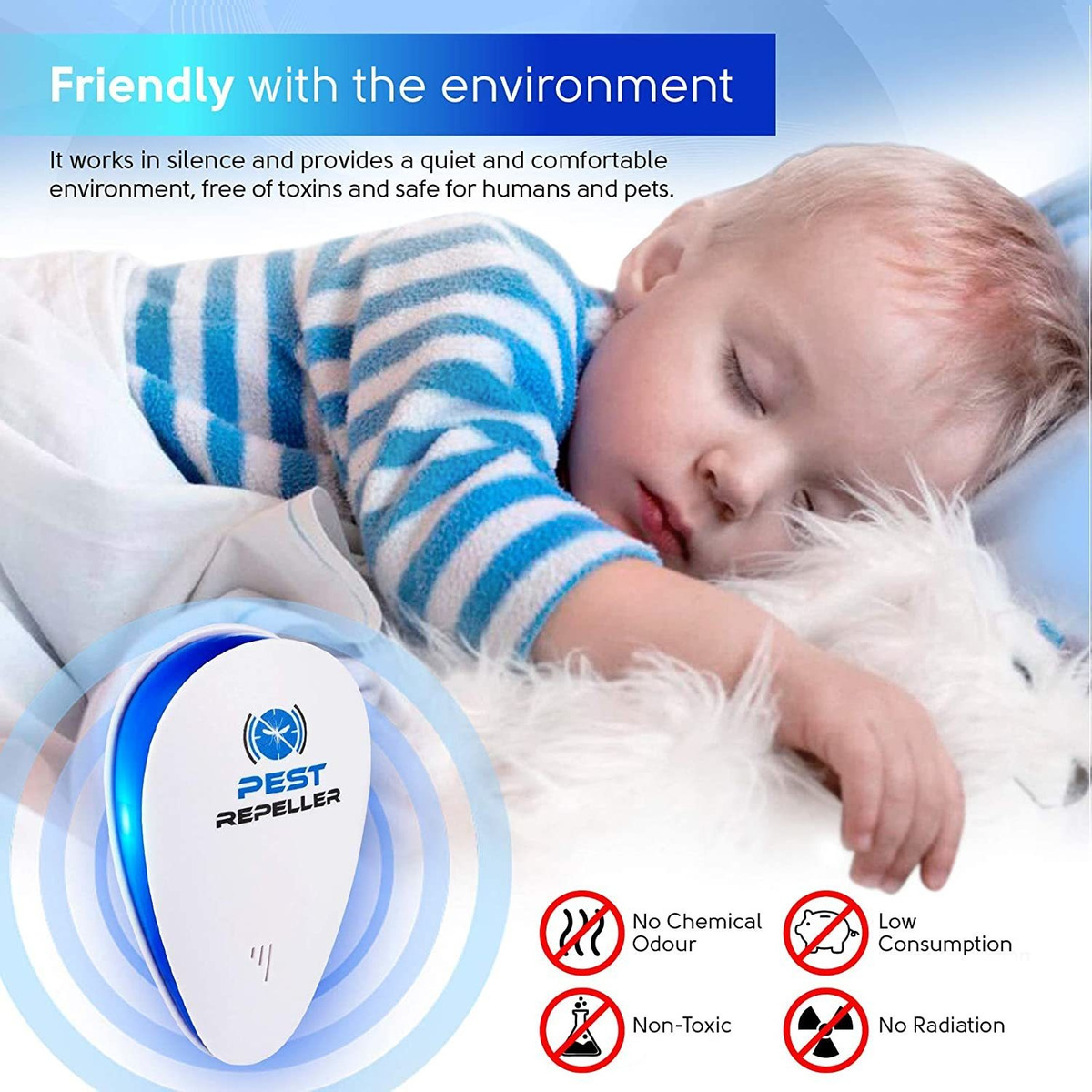 ADVANCED CHIP DUAL TECHNOLOGY : The improved dual chip ultrasonic pest repeller emits layers of bionic waves, ultrasonic waves, and electromagnetic waves that irritate the nervous system of insects and rodents by expelling them from their homes, intermittent changes in the frequency of the ultrasound prevents them from developing immunity and adaptability.; WIDE COVERAGEAND 24H DE PROTECCION : Pest repellent is effective in an interior area of up to 1600 square feet. It is widely used in homes, warehouses, offices, garages, hotels, etc. We recommend that you install 1 for each room because the ultrasonic frequency cannot penetrate walls and solid objects. That is why we prepare a pack of 6 repellents so that they can cover almost the entire house.; EPA APPROVED PESR CONTROL: Our Ultrasonic Pest Repeller meets the requirements of the United States Environmental Protection Agency (EPA) Establishment Number NO: 94466-Chn-1. Our commitment is that we will never make false or misleading claims.; EASY AND SAFE TO USE : Simply connect the Electronic Pest Repeller to the wall outlet 30 inches from the ground to repel mice and roaches and 47 inches from the ground to repel mosquitoes and spiders, when the blue light indicates the product is working.; 1600 SQUARE FEET EFFECTIVE COVERAGE: Each room with pest infestation must apply one unit. As the ultrasound cannot penetrate the wall, additional units must be applied for larger areas such as warehouses, shopping malls, etc. Protect your home or office from mice, bugs, insects, and other creepy crawlies with a versatile plug-in ultrasonic pest repeller from Brand.