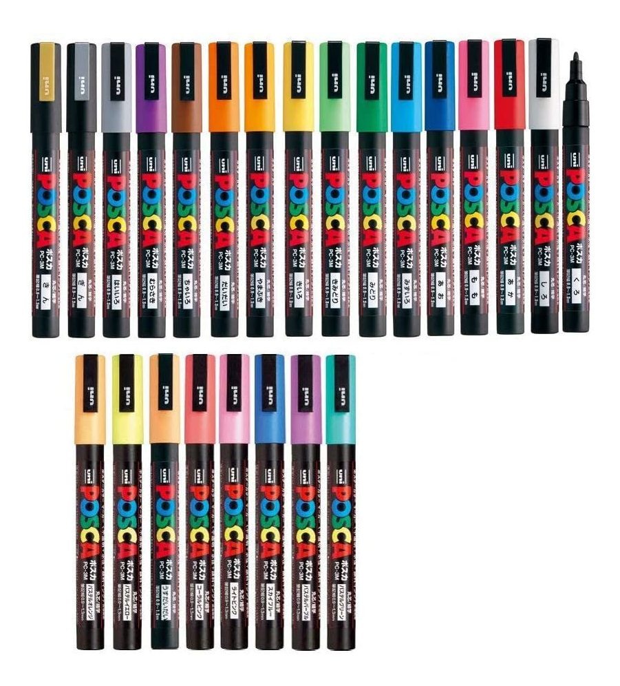 Value Set for Uni-Posca Fine point (PC-3M) ALL 24 Colors; Water-based pigment ink that is non-toxic, lightfast, waterproof and can choose pen tip for purpose; Unlike alcohol-based marker ink, the ink does not bleed.; With Natural Colors, Gold and Silver Color! Todos nuestros productos estan en inglés SKU 91221060000