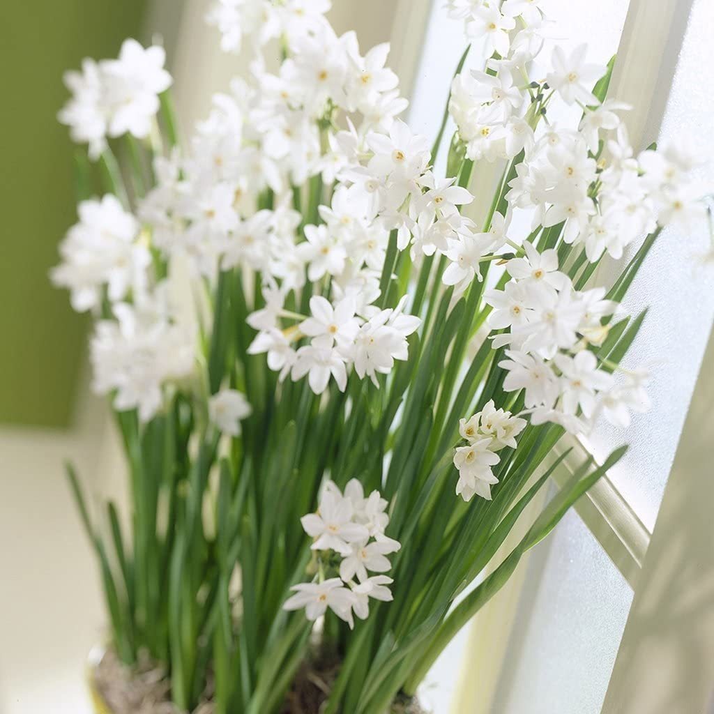 Fácil para crecer día festivo color/belleza intemporal/no requiere ningún tratamiento especial; paperwhites son non-hardy tazetta Narcisos que puede ser forzado y crecido en el interior de la casa sin ninguna exposición, tratamiento especial fría, o tratamiento; Tamaño de la foco: 14/15 cm/exposición: Pleno sol a sombra parcial/flores: invierno/Tiempo de planta: descenso; Crece 12 18 Tall/planta 6 8 apart, 6 Deep/Hardy en zonas de USDA 8 10; 48 estados US contiguos, además el distrito de Columbia Paperwhites are non-hardy tazetta daffodils that can be forced and grown inside the home without any cold exposure, special handling, or treatment. Fun and easy to grow in pots, on water and/or a favorite vessel. Timeless beauty, sweet perfume, and absolute dependability have made Paperwhites Narcissus the absolute all-time favorite bulb for indoor forcing in winter. Clusters of pure white blooms will come 4-6 weeks after potting. Very easy to grow, no special handling or treatment is required. Todos nuestros productos estan en inglés SKU 15092131300