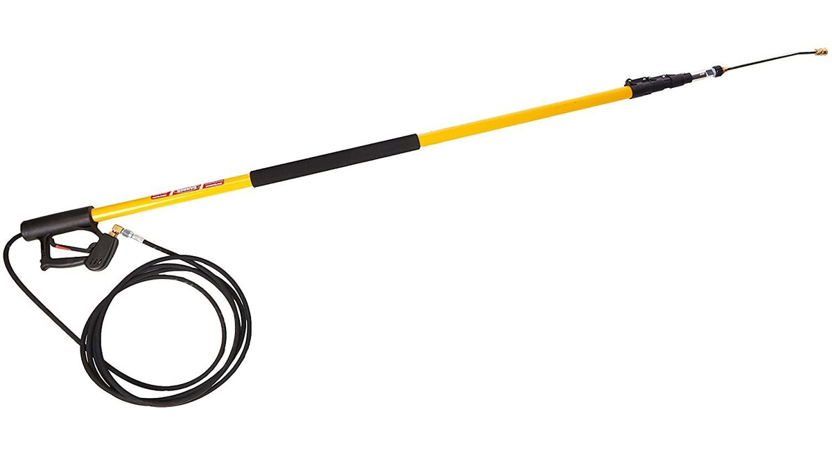 BE Pressure 24-foot Telescoping Extension Wand with lever lock. Wand extends from 7-feet up to 24-feet Ideal for cleaning second story walls, gutters, and soffits without the use of a ladder. The light-weight fiberglass wand is easy to handle and maneuver. This model is rated for a maximum pressure of 4,000 PSI, 8.0 GPM, and 200-degree maximum water temperature.