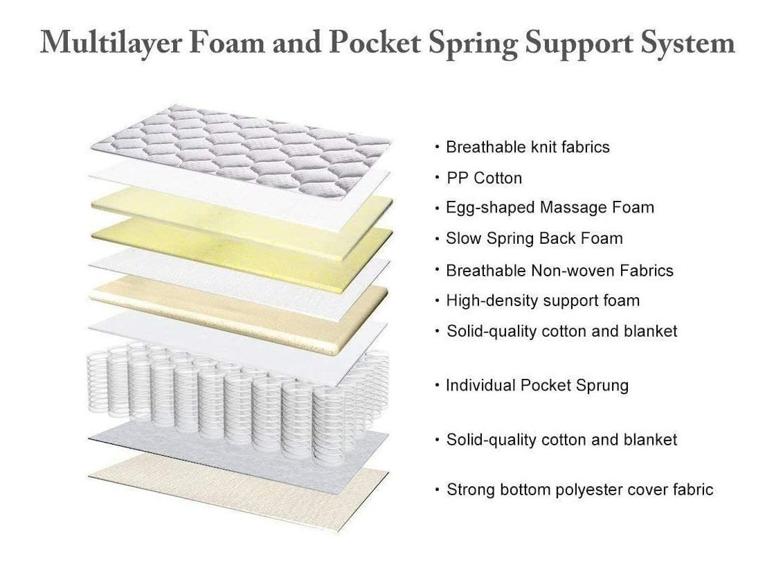 Medium-Firm Plush Feel- Fully expanded 803910.2inch (LWH). This Twin XL boxtop mattress is supported by hundreds of individual pocket springs. Offer even support to 7 parts of your body (Feet, legs, hips, waist, shoulders, neck, head). Orthopaedic designed caters your vertebral well, help adjust and correct your sleeping posture; CertiPUR-US Certified- Built-in memory foam is approved by certiPUR-US. Non toxic, hypoallergenic, baby-friendly; Vesgantti Luxury Support System- Luxury MULTILAYER FOAM AND POCKET SPRING SUPPORT SYSTERM, provide more buffers for your body. The slow springback foam is made of high density temperature-sensitive material, comfortable and; Ultra Quiet- Excellent shock-absorption and resilience, can effectively absorb noise and vibration caused by tossing and turning. No waken up by noise, not disturb companion and effectively reduce your turning times. Have a sound and peaceful sleep!; Mattress-in-a-Box – Its delivery: vacuum sealed and neatly rolled in a box. Smaller size, easy to carry, restore in 10 seconds after unpacking, fully expanded for 72 hours. (Please note: once the mattress open and restore, it cannot be roll back again) Todos nuestros productos estan en inglés SKU 91221018566