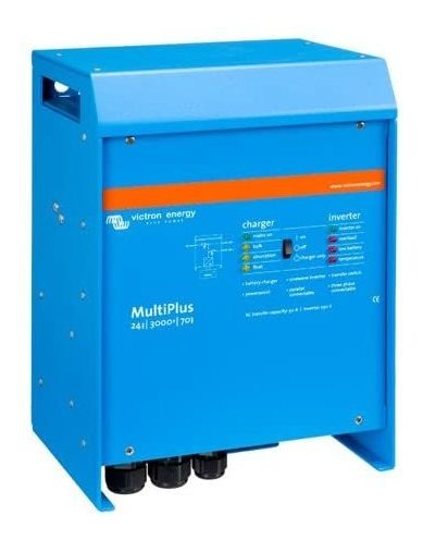 The Multiplus is a powerful true sine wave inverter, and includes a sophisticated battery charger with adaptive charge technology and a high-speed AC transfer switch in a single compact enclosure. Configurable with DIP switches or a PC (via an optional cable), and connects to various Victron remotes including the Blue Power Panel and Color Control GX. Dual leg charger keeps your start battery charged separately from the house bank without the need for relays or splitters. Power Assist (sometimes called hybrid technology) allows the inverter to supplement shore power or generator when loads exceed a set amount. The charger output can also be moderated when incoming AC is limited. Stackable for increased output, or create a split or 3-phase system. Very low power consumption – just 15W in normal mode, 4W in search mode. Built-in transfer switch with less than 20-millisecond response. All Victron products (except batteries) are backed by an industry-leading 5-year warranty through their worldwide service network. Todos nuestros productos estan en inglés SKU 15092102323