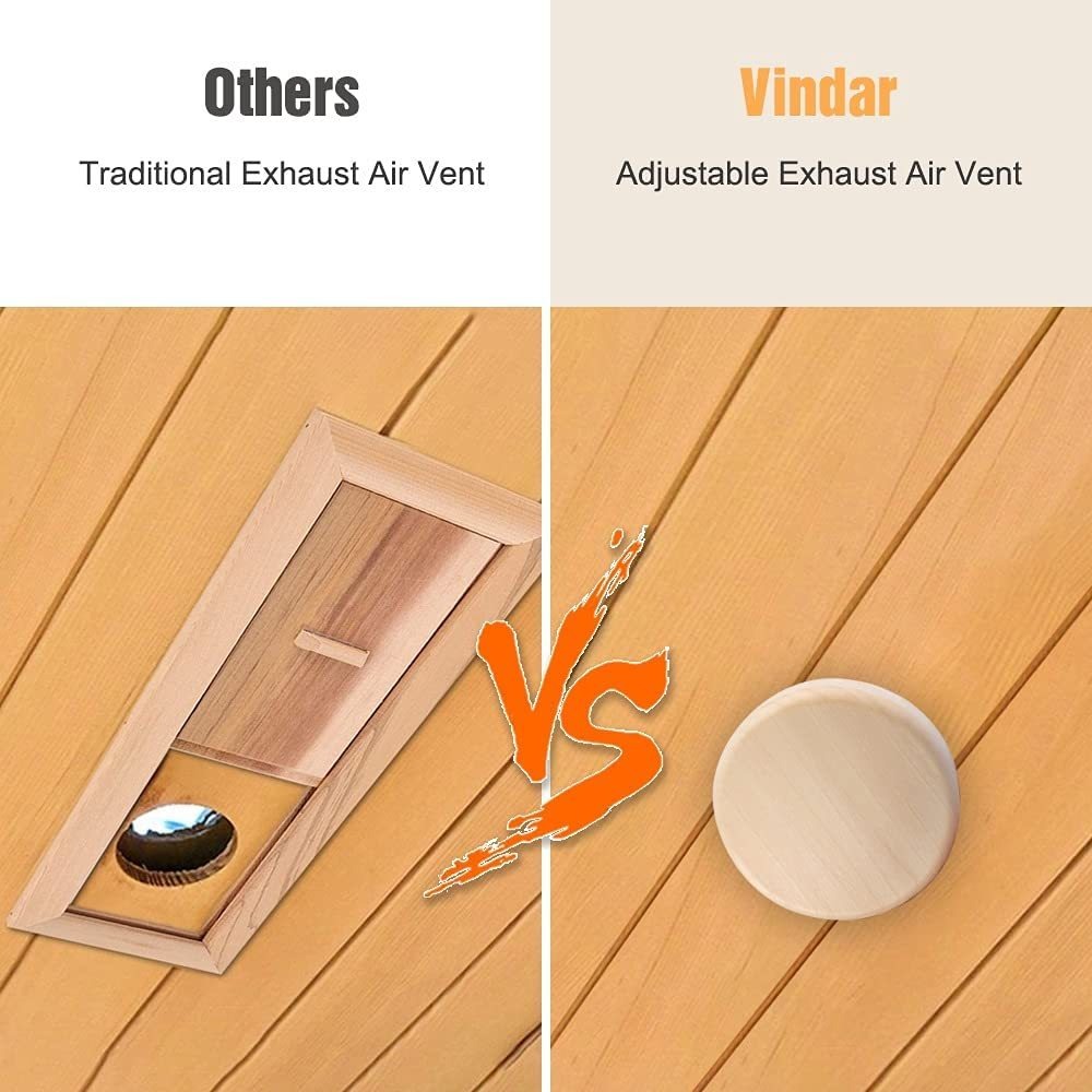 Actualiza tu sistema de ventilación de barril tradicional con la ventilación de aire de escape ajustable Vindar, gira para cambiar el flujo de aire según sea necesario.; Ajustable, más conveniente, herramienta de control de circulación de aire y escape necesaria para sauna o sala de vapor. También se puede utilizar para baño, cocina y mucho más.; Diámetro interior de 3.5 in, diámetro exterior de 4.7 in, diámetro de madera de 4.7 in.; Nuestra ventilación de aire está hecha de madera natural de Aspen de alta calidad, diseño elegante, se ve más agradable, superficie lisa sin rebabas.; Fácil de instalar, montado en la pared o en el techo, viene con las instrucciones de instalación (idioma español no garantizado) y 3 tornillos. El paquete incluye: 1 rejilla de ventilación para sauna Vindar. Todos nuestros productos estan en inglés SKU 15092108554