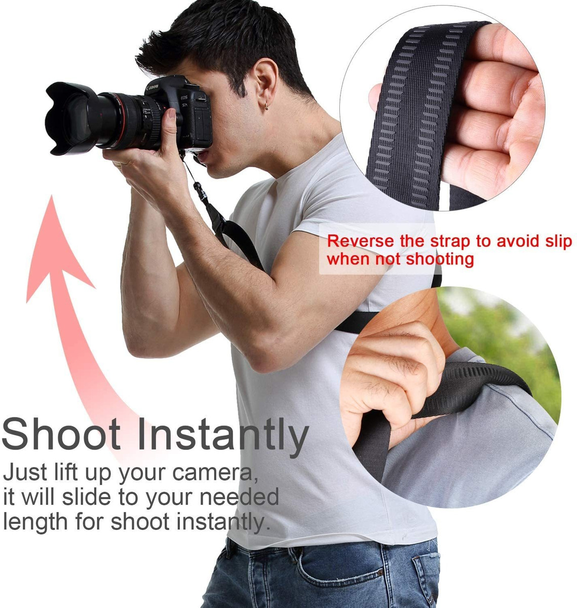 La correa acolchada de nailon interna proporciona COMODIDAD Durante todo el dia pecado: Añadir volumen. Enlaces de hebilla y tornillo de metales de Liberación Rápida de de pulgada para Conectar y Separar tu Cámara rapidamente. Dos Puntos de Conexión a la Cámara garantizan Una direction seguridad estable y segura.