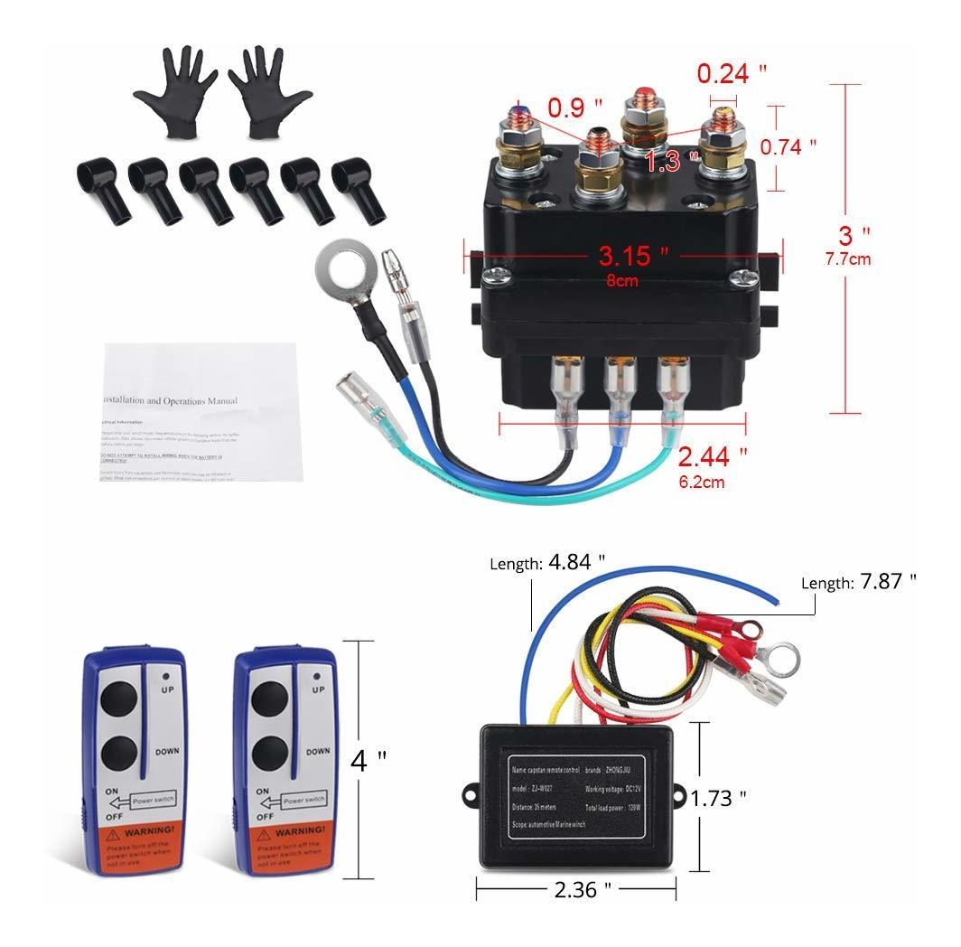 1. Hecho de acero sólido y resistente a la intemperie y superficie negra con recubrimiento en polvo para una gran durabilidad. Este contactor solenoide de cabrestante viene con una carcasa sellada inastillable y resistente a la corrosión.; 2. Está diseñado para manejar cargas de corriente intermitente de 250 amperios durante hasta 10 segundos, requiere un tiempo de enfriamiento de 20 a 30 segundos entre ciclos, kit de control remoto inalámbrico de 12 V para cabrestantes de hasta 900 a 5,019.9 lbs. Fácil de instalar y usar, portátil.; 3. Diseño de antena integrada, alcance remoto de hasta aproximadamente 164.0 ft. La luz indicadora visual muestra el funcionamiento remoto. Permite al operador mantener libre de peligros aparejos. El operador puede controlar el cabrestante o el levantamiento desde diferentes posiciones.; 4. Receptor resistente a la intemperie, diseño impermeable, carcasa impermeable que protegerá el receptor de la lluvia o derrames de café, no se recomienda sumergir en el agua.; Contactor de relé solenoide de cabrestante de 5.12 V 250 A para todos los cabrestantes de 12 V, incluyendo ATV, UTV, SUV, Jeep, vehículos 4×4, y remolque de 12 V, etc. Todos nuestros productos estan en inglés SKU 4022206665