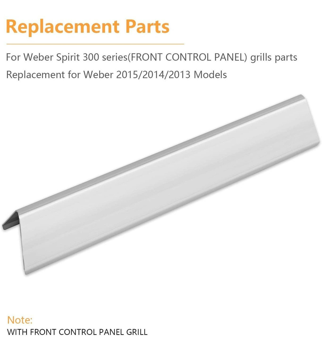 Piezas de repuesto para parrillas de gas de la serie Spirit 300;; Barras aromatizantes para modelos Weber 2015 (con paneles de control frontales superiores): E-330 46810001, Spirit-330 46800401, Spirit-330 47800401;; Piezas de repuesto para los modelos Weber 2014 (con paneles de control frontales superiores): E-310 46513101, E-310 47513101;; Sustitución para los modelos Weber 2013 (con paneles de control frontales superiores): E-310 46510001, E-310 47510001, E-320 46710001; partes de la parrilla de salpicaduras Weber: Spirit-310 46500401, Spirit-320 46700401, Spirit-320 47700401.; Dimensiones: 15.3 pulgadas de largo x 2.6 pulgadas de ancho x 2.5 pulgadas de alto. Paquete: juego de 5 paquetes. Materiales: barras de sabor de acero inoxidable. Características: