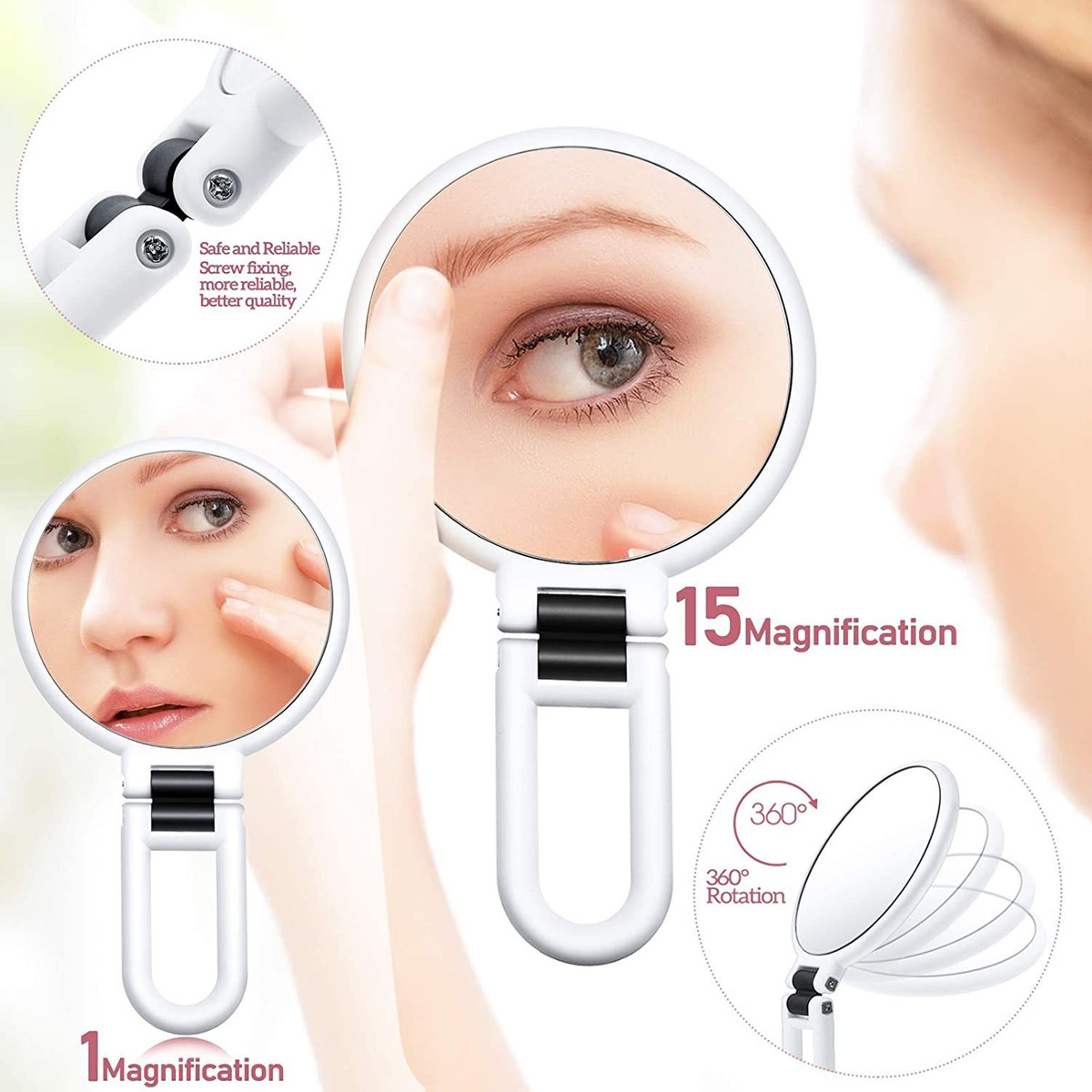Willbond 2 piezas 15x espejo de mano con Aumento y 10x espejo de Viaje de maquillaje, espejo de doble Cara plegable con 1 / 15x 1 / 10x Aumento