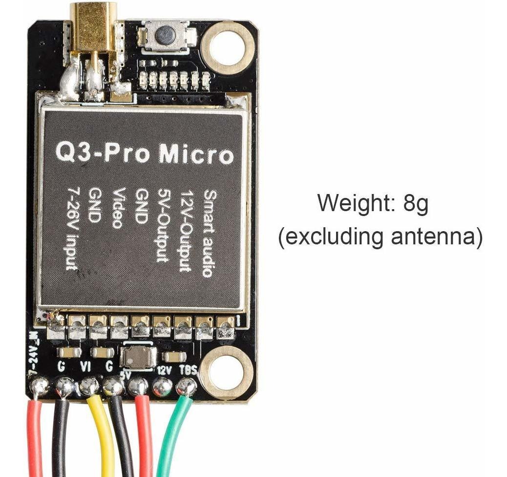 30.5X30.5mm (agujero) Partido para FC; Con Almohadillas de soldar; Soporte 5V / salida de 12V para la cámara; parámetro Soporte remota ajustada por Betaflight, controlador de vuelo, OSD, 0.01mW para evitar interferencia de canal adyacente, Integrated Uart; versión mejorada del Q3 es una mejor opción, ya que tiene un tamaño más pequeño, más ligero de peso y sus dos agujeros de montaje son más convenientes para instalar Todos nuestros productos estan en inglés SKU 8111916860
