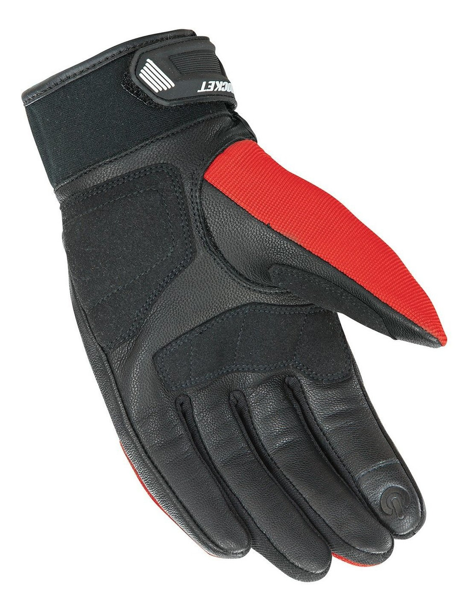 2-Way Stretch Span cuero / Poly y piel de cabra de revés; Split-nudillo diseñado, perforado nudillo de la armadura de cuero; 5 mm de relleno de alta densidad en los nudillos, índice y dedo medio; Articulado completo Flex paneles elásticos en los dedos medio e índice; material conductor táctil inteligente en los dedos índice para el acceso instantánea móvil amigable, pantalla táctil Color: Rojo / Negro | Talla larga