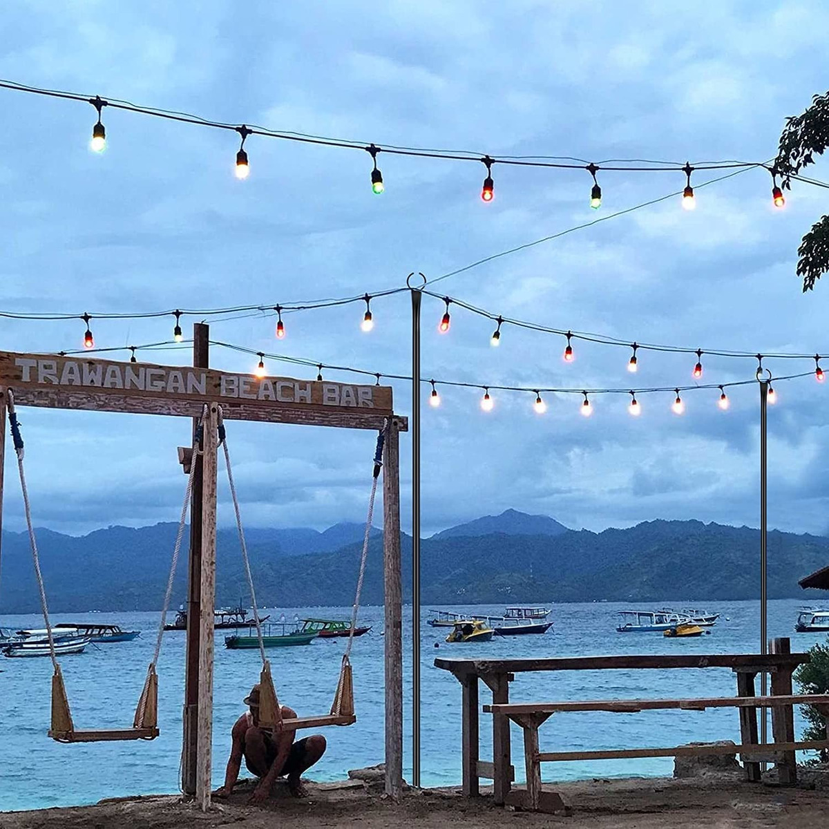 Varias aplicaciones: este poste de luz de cadena para patio trasero es perfecto para todas las necesidades de decoración de tu hogar, jardín al aire libre y colgante de Navidad como pequeñas plantas colgantes, patio, solar, bulbo estafa, campanillas, adornos, banderas, tarros de albañil o banderines coloridos. Y este poste también está diseñado para luces de cadena al aire libre de grado comercial o decoraciones de fiesta.
