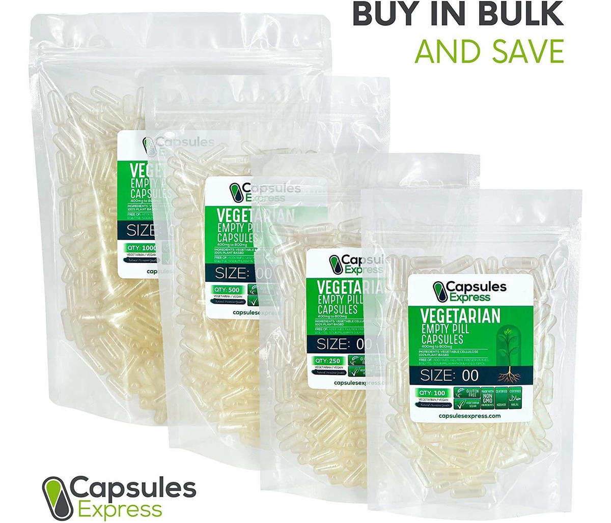 Fácil de llenar – Si te gusta para llenar manualmente las tapas o utilizar una máquina de llenado de cápsulas, nuestras tamaño de 00 cápsulas vegetales vacías están diseñados con conisnap dura anti-rotura extremos redondeados y son transparentes para hacer un llenado preciso más fácil que nunca. Nuestro tamaño clara 00 cápsulas de 600 mg a 1100 mg ocupan de suplementos en polvo en función de la densidad .; Se cierran de golpe Diseño – Nuestro diseñado por expertos en Apagar asegura diseño que no pierda ninguna de sus valiosas polvos, hierbas o ingredientes durante o después de llenar sus pastillas. La característica se cerraba también ayuda a proteger el contenido de las cápsulas vegetales vacían de la humedad y el aire. Tener la tranquilidad de saber que sus cápsulas vacías vegetarianas son seguras .; Fácil de digerir – Cada cápsula veg está hecho de 100 por ciento de celulosa HPMC vegetal y se disolverá en el tracto gastrointestinal para una máxima absorción de sus ingredientes de suplementos. Estas tapas vegetarianas son Kosher sin aditivos o conservantes. También tenemos una línea de cápsulas de gel de gelatina de pastillas vacíos, asegúrese de comprobar que funciona .; Opciones a granel – Elija entre 100, 500, 1000, 5000 y opciones convenientes recuento granel. En XPRS Nutra (Cápsulas Express), que hacer un esfuerzo adicional para ayudarle a alcanzar la píldora más alta calidad carcasa cápsulas para llenar sus pre-hechos de suplemento, nootrópicos y cápsulas de gelatina veganos fitness. Nuestras cápsulas vegi vaciar 00 están aquí para ayudar a hacer su vida más fácil .; Amen a sus Suplementos – Te encantará la superior calidad, la seguridad y la comodidad de nuestro tamaño cápsulas de celulosa 00. Nos única fuente de los fabricantes de la más alta calidad. Es por eso que su pedido de cápsulas de pastillas vacíos se asegura con nosotros. Parte de los miles de clientes satisfechos y su juego de la salud con nuestras cápsulas vacías 00. Paquete del artículo Cantidad: 500
