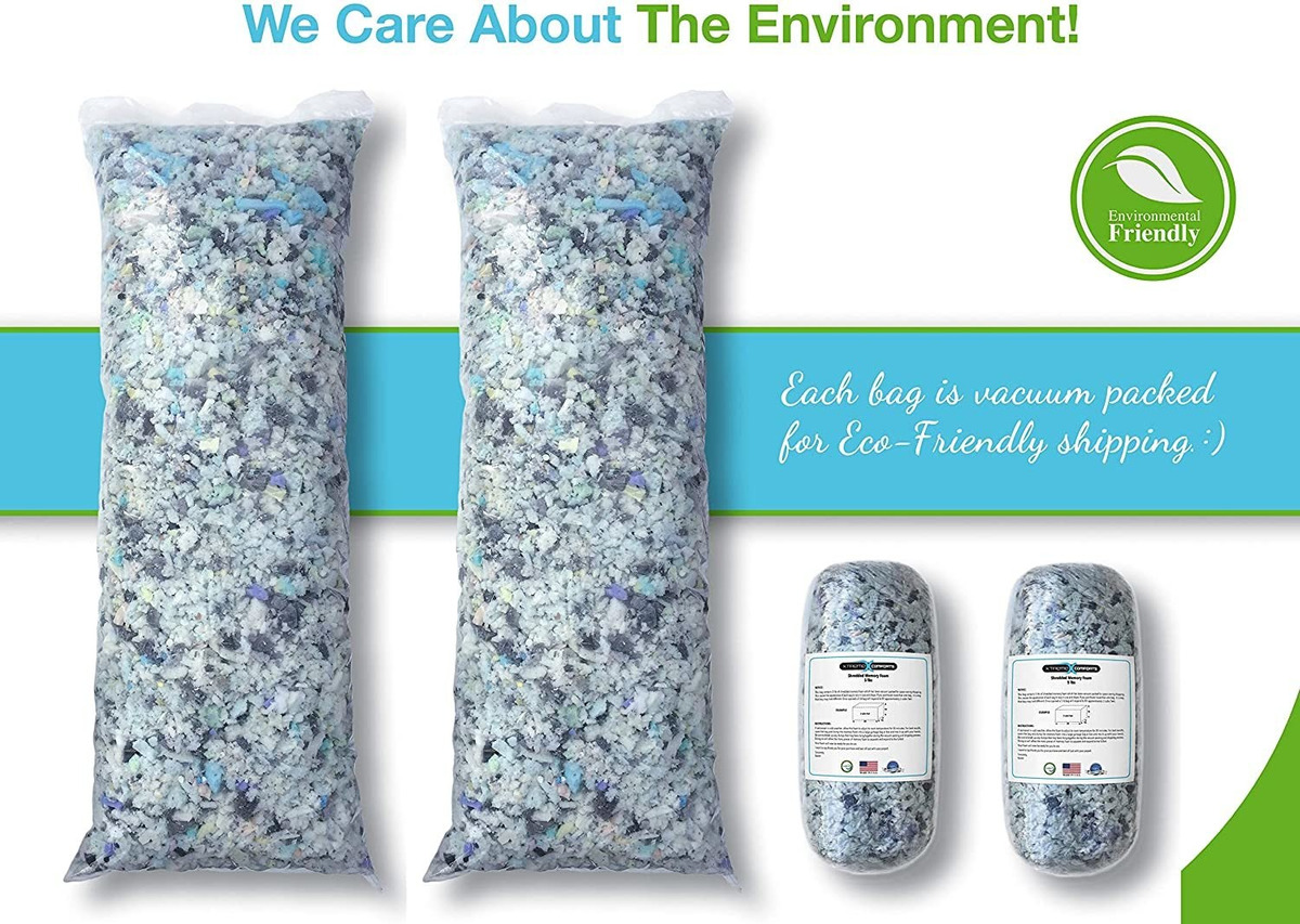 La espuma triturada Xtreme comodidades fabricada en los Estados Unidos Es El relleno perfecto almohadas Pará, pufes, párr perros Camas, cojines y any Otro producto de confort Que necesite ONU relleno Comodo.