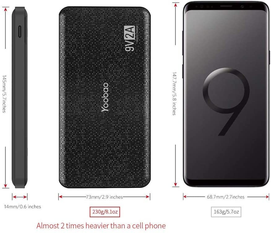 Carga más rápido Apoyo Protocolo y de carga Qualcomm carga rápida 3.0 Huawei fcp protocolo de carga rápida, capaz de cargar dispositivos compatibles hasta 4 veces más rápido que carga convencional.; Diseño ultra delgado, con solo 0.6 inches de grosor, delgado como su teléfono lo que le permite deslizarse en su bolsillo con facilidad. Tiny cuadros diseño en la superficie lisa, muestra su sabor único.; Alta capacidad 12000 mAh alta capacidad carga Huawei P9 2,3 veces, Samsung S7 2,3 veces y iphone7 3,5 veces. se recarga en 6 horas con 2 A carga rápida de entrada.; Calidad superior Alta calidad batería de polímero de litio por Yoobao con sistemas de protección para asegurar la seguridad de su teléfono inteligente y stablitly cuando carga. tiempos de más de 500 ciclos de recarga durante la vida útil de la batería para el uso a largo plazo.; Lo que usted consigue Yoobao 12000 mAh banco de potencia de carga rápida Q12, cable Micro USB, manual del usuario, 24 meses de garantía (no incluye cable lightning y USB-C). Todos nuestros productos estan en inglés SKU 91221078029
