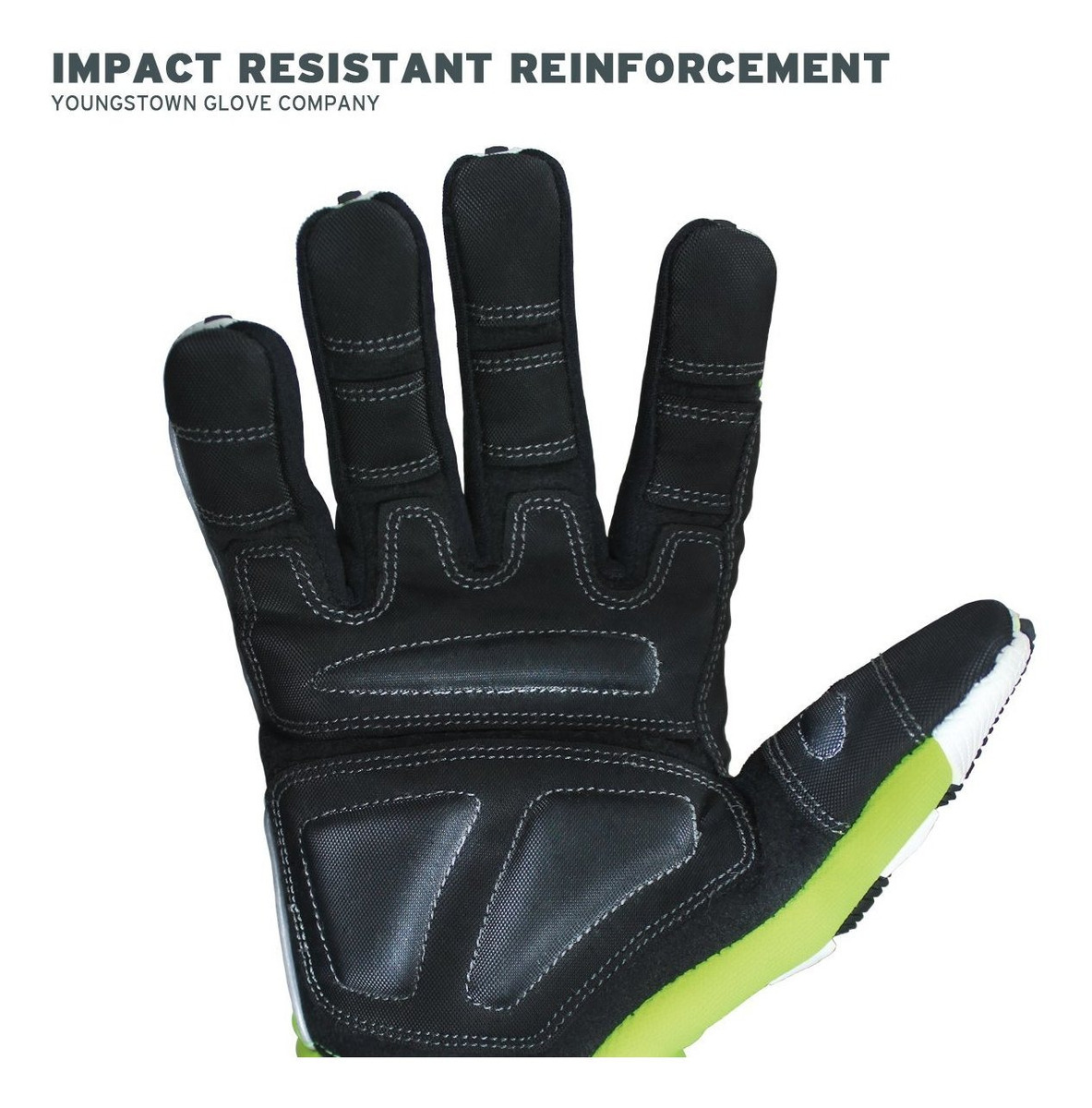 de Youngstown Titan XT forrada con Kevlar ofrece una protección total de la mano, de alta visibilidad y resistencia al corte. El XT Titan con Kevlar está completamente alineado con Kevlar largo de todo el guante; dorso de la mano, lado de los dedos, palma y hasta el puño. Este revestimiento Kevlar mejora en gran medida el corte y punción resistencia del guante mientras que también aumenta la durabilidad general. La parte superior de la mano cuenta con protección de dedos de TPR para proteger contra la parte superior de la mano de impacto. Las formas de TPR perfectamente sobre los dedos para proporcionar protección sin limitar la rotura violenta destreza. Este guante también cuenta con reflectante 3M Scotchlite para aumentar la visibilidad en situaciones de poca luz. La palma de la firma cuenta con refuerzo antideslizante de Youngstown para mayor agarre y durabilidad, junto con 5,0 mm de espuma EVA. Este guante es ideal para Auto Rescate, Industria del Petróleo y Gas, Minería, demolición y cualquier aplicación robusta, donde se requiere una protección total de la mano. Disponible en las tallas S – XXXL.