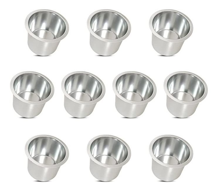 Fabricado en aluminio sólido de alta calidad con acabado en plata brillo; Medidas de 3,3 pulgadas (8,4 cm) de diámetro interior, 2,95 pulgadas (7,5 cm) de profundidad, 3,9 pulgadas (9.9cm) de labio a lip.Fits cualquier bebida 3 1/4″ pulgadas de diámetro o menos; gota en el estilo, se ajusta a aproximadamente 3 3 / 8 pulgadas (86mm) de diámetro hole.We recomendamos que espere hasta que reciba la copa antes de perforar los agujeros de montaje, ideal para instalar en el póquer u otros juegos de mesa, consola central del coche, barco, sofá, banco, RV Camper; 10 portavasos Por orden Todos nuestros productos estan en inglés SKU 7072008981