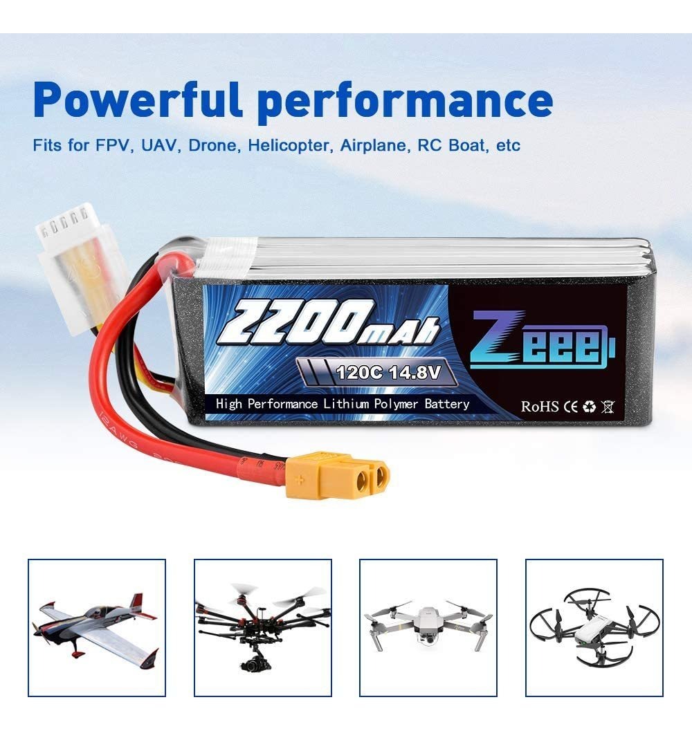 Especificaciones: Zeee 14.8v 2200mah 120c 4s Lipo Con Xt60 Del Enchufe Rc Graf