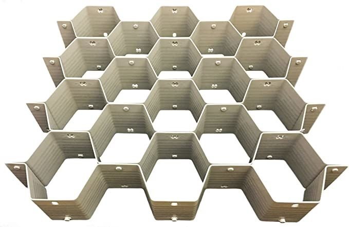 Excellent for socks, underwear, jewelry, gloves, tights, stockings, ties, arts crafts etc.; Makes finding the exact item you want quick and easy.; Easy snap together assembly. Assembled in seconds.; Modular space-saving honeycomb design lets you customize to fit your own needs.; Dimensions(L x W x H) : 14 x 13 x 3 Color gris